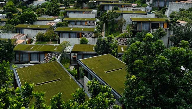 Green roofs can moderate roof temperatures, supporting comfort and durability.